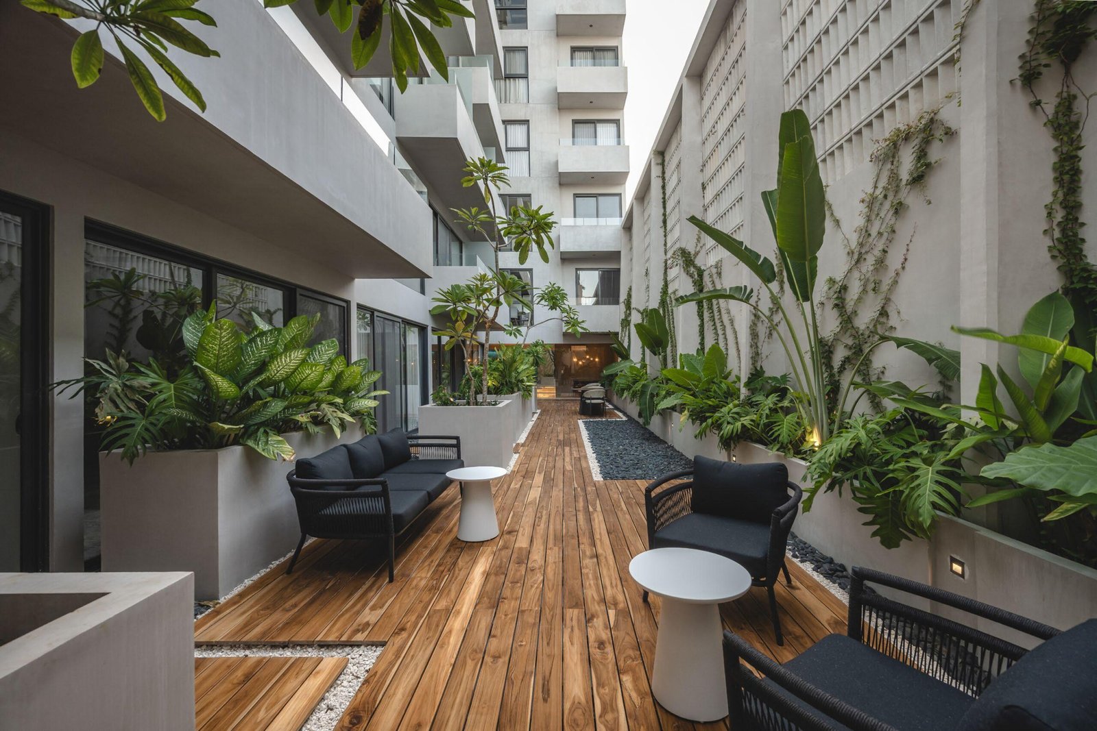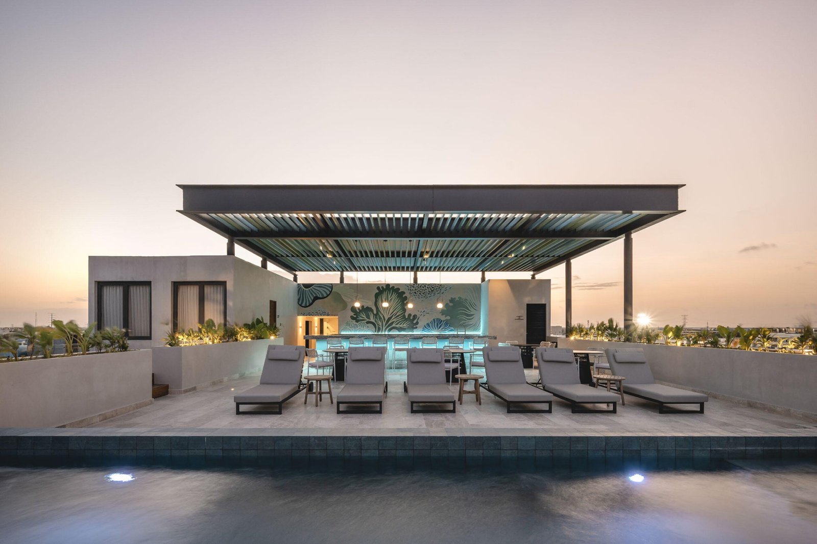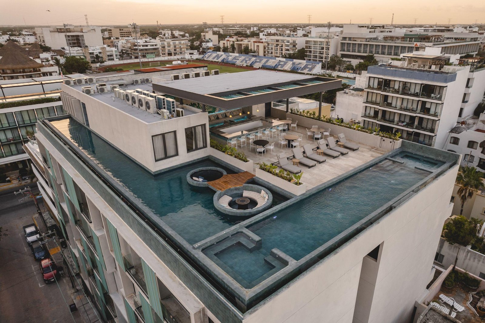 Amenidades de Lujo y Bienestar (Rooftop y Spa) Piscina Panorámica 🏊♀️ Carril de Nado ➡️ Jacuzzi 🛁 Asoleadero (Solarium) ☀️ Spa 💆Área de Masajes 🧘 Gimnasio 💪 Amenidades Sociales y de Conexión (Lifestyle) Terraza (Rooftop) 🥂 Fogatero (Fire Pit Area) 🔥 Mirador (Viewpoint) 🔭 Salón (Lounge) 🛋️ Amenidades Operacionales y de Conveniencia Estancia / Lobby Hotelero 🛎️ Centro de Negocios 💼 Elevador ⬆️ Estacionamiento 🅿️ Estacionamiento de Bicicletas 🚲